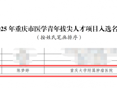 【喜报】营养科余慧青教授团队陈梦婷博士入选2025 年重庆市医学青年拔尖人才项目