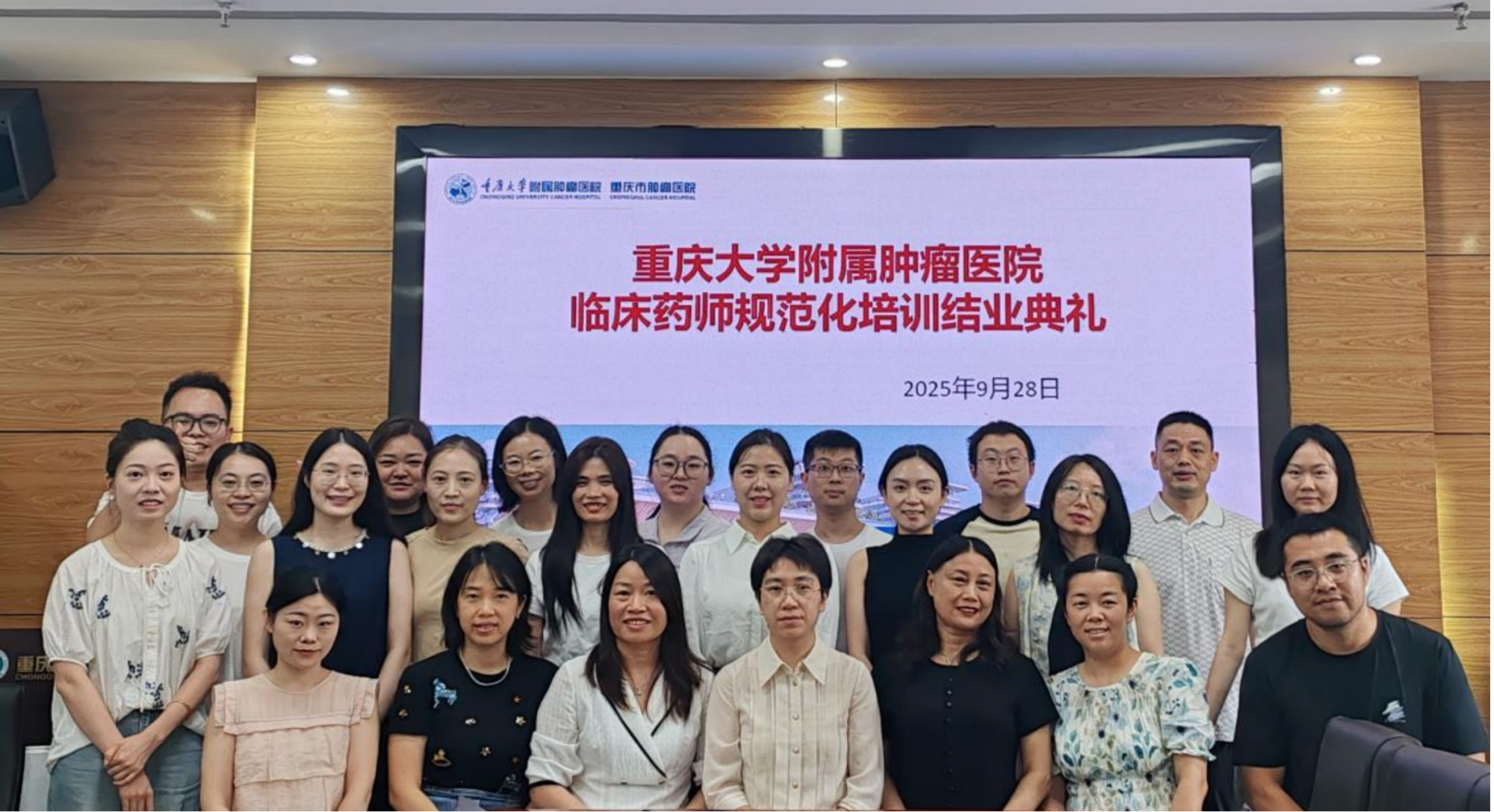 2025年9月28日,重庆大学附属肿瘤医院临床药师培训基地举行2024年秋季临床药师培训结业典礼。教务科副主任戴羽,药学部副主任张小华、全体带教老师和学员参加结业典礼。会议由教研室副主任李丽仙主持。
