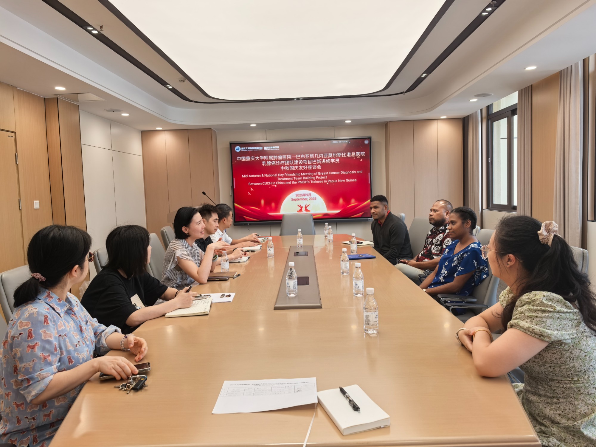 重庆大学附属肿瘤医院召开巴布亚新几内亚进修学员2025年度中秋慰问座谈会